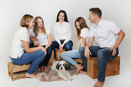 Eine sehr schöne Wirkung hat eine vorherige Absprache der Outfits. Weniger ist hier mehr! Weiße T-shirts oder Hemden wirken auf den Fotos immer gut und übertönen nicht die Gesichter.